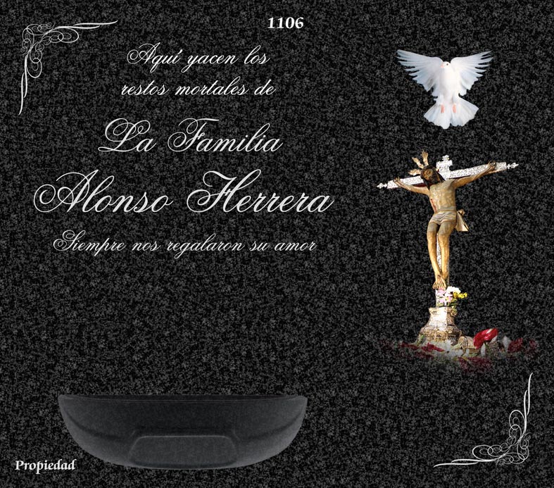 Amplia gama de todo tipo de lápidas para nichos, panteones y mausoleos.